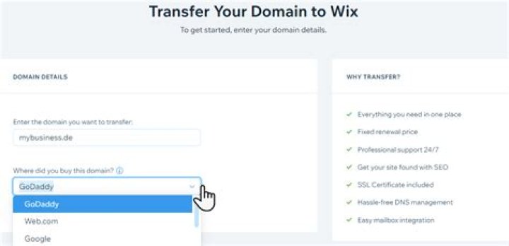 How to transfer or point your GoDaddy domain name to your Wix site. Wix will allow you the ability to both, transfer and connect your domain name to your Wix premium plan. When you connect your domain name, this means that it remains at GoDaddy but it will point to your Wix site.How much does it cost to buy a domain name on Wix?