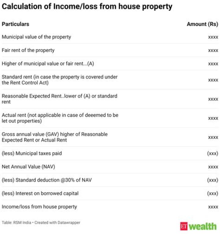 Actual rent received or receivable by the owner of the let-out property. Municipal valuation of the property. Net Annual Value is then calculated by deducting municipal taxes paid during the year from the Gross Annual Value. Deductions are provided under Section 24 of the Income Tax Act, 1961.