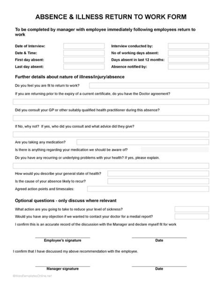 How long should an employee stay off work after sickness has ended?