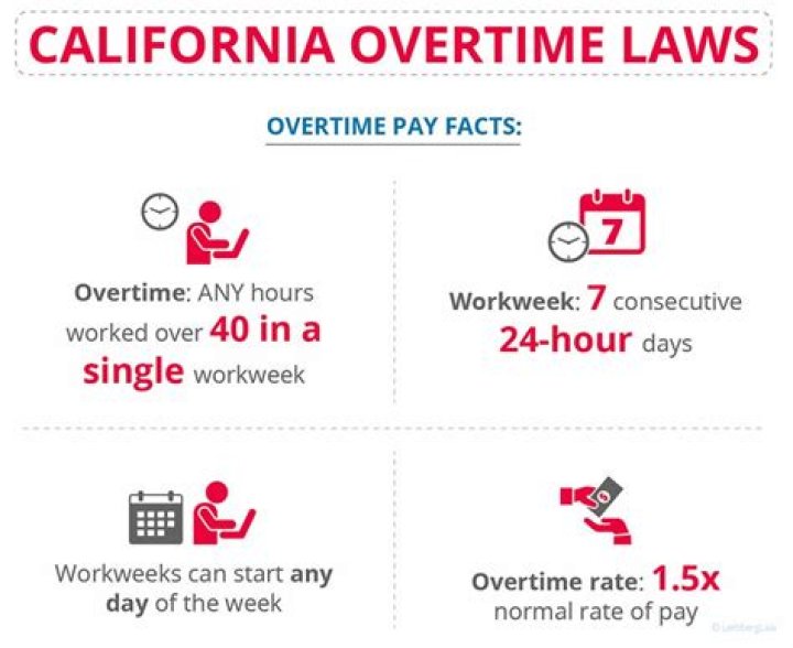 Updated May 11, 2021 California overtime laws require non-exempt employees to earn one-and-a-half times their regular rate of pay for working more than: Eight hours in a workday, 40 hours in a workweek, or six consecutive days in a workweek.