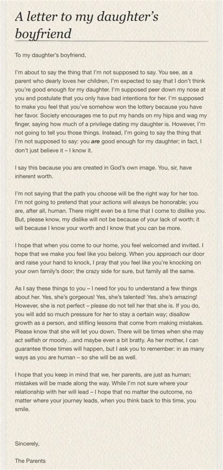 What do I say to my daughters boyfriend?