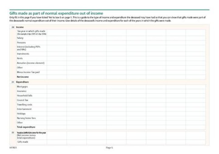 Form IHT403 requires the details of annual income and expenditure in each year gifts were made. An annual record-keeping exercise, which your accountant can help with, will make the process much easier than trying to backdate records later. Anything more substantial may be subject to tax if you don’t survive seven years after making the gift.