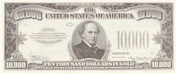 The $10,000 bill featuring the portrait of President Lincoln's Secretary of the Treasury, Salmon P. Chase, was the highest denomination US currency ever to publicly circulate.